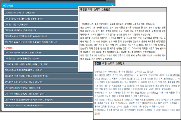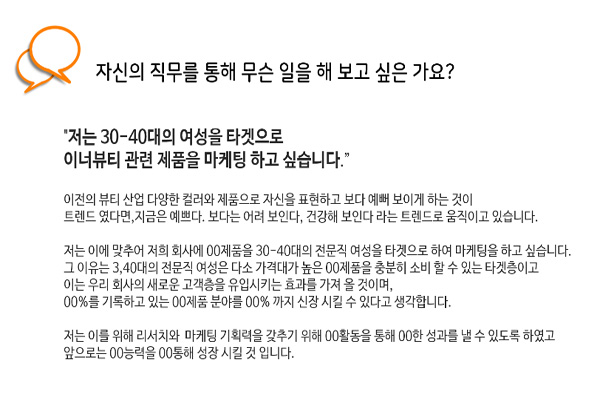 ¸éÁ¢½ºÇÇÄ¡, ¿¹»ó¸éÁ¢Áú¹® µµÃâ ¹× Áغñ¸¦ ÅëÇØ Ãë¾÷, ¸éÁ¢ °æÀï·ÂÀ» Çâ»óÇÑ´Ù. ÀÚ½ÅÀÇ ¿ª·®À» ¾îÇÊ ÇÒ ¼ö Àִ Ű¿öµå¸¦ ã¾Æ ÀÚ±â¼Ò°³ ½ºÇÇÄ¡¸¦ ÀÛ¼ºÇÑ´Ù. Èñ¸ÁÁ÷¹«ÀÇ ¿¹»ó¸éÁ¢Áú¹®°ú Áú¹®ÀÇ Àǵµ¸¦ ÆÄ¾ÇÇÏ°í ¸ÂÃãÇü ´äº¯À» ÁغñÇÑ´Ù. ±³À° Ä¿¸®Å§·³