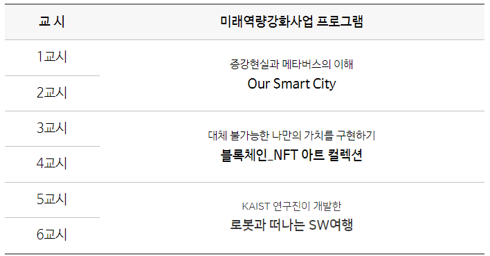 µðÁöÅÐ ¿ª·®À» ¿ä±¸ÇÏ´Â ±â¾÷µéÀÌ Áõ°¡ÇÔ¿¡ µû¶ó µðÁöÅÐ ±â¼úÀÇ ÀÌÇØ¸¦ ¶Ù¾î ³Ñ¾î ¾ÕÀ¸·Î ³ª¾Æ°¥ Ãë¾÷°ú ½ÇÁ¦ Á÷¹«¿¡ À¶ÇÕÇϰí Àû¿ëÀÌ ÇÊ¿äÇÑ Æ¯¼ºÈ°íµîÇб³ ÇлýµéÀ» À§ÇÑ ÇÁ·Î±×·¥À¸·Î ÃÑ 3Â÷½Ã¿¡ °ÉÃÄ ±³À°ÀÌ ÁøÇà µÇ¾ú½À´Ï´Ù.