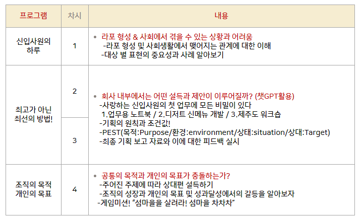 ¼­¿ïÀǷẸ°Ç°íµîÇб³ 3ÇгâÀÇ °úÁ¤Àº Ãë¾÷À» ¾ÕµÎ°í ÀÖ´Â ÇлýµéÀÇ ºñÁî´Ï½º ¿ª·®À» °­È­Çϱâ À§ÇÏ¿© »ý¼ºÇüAI¸¦ Ȱ¿ëÇÑ ºñÁî´Ï½º ¿ª·® °úÁ¤À¸·Î ÁøÇàµÇ¾ú½À´Ï´Ù. ´Ù¾çÇÑ ¹Ì¼Ç°ú »óȲÀ» ºÎ¿©ÇÏ°í ¼öÇàÇϸ鼭 Á÷Á¢ ¾÷¹«»óȲ¿¡¼­ÀÇ ³í¸®Àû Àü´Þ°ú ¹æ¹ý, ±âȹÀÇ ¹æ¹ýÀ» ¾Ë°í ½ÇÃµÇØº¸´Â ½Ã°£À» °¡Á³½À´Ï´Ù.