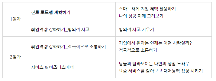 µÎ¹øÂ° ½Ã°£ÀÎ [Ãë¾÷¿ª·® °ÈÇϱâ - âÀÇÀû»ç°í]¸¦ ÅëÇØ ³ªÀÇ ¹Ì·¡¿¡ ³»°¡ ¿øÇÏ´Â ÀÏÀ» ÇÏ°Ô µÈ´Ù¸é ¾î¶»°Ô ÀÏÀ» Çϸé ÁÁÀ»Áö, ¾î¶² ¹®Á¦°¡ »ý±â°í ¾î¶»°Ô ÇØ°áÇϸé ÁÁÀ»Áö¸¦ »ý°¢Çغ¸´Â ½Ã°£À» °¡Á³½À´Ï´Ù.